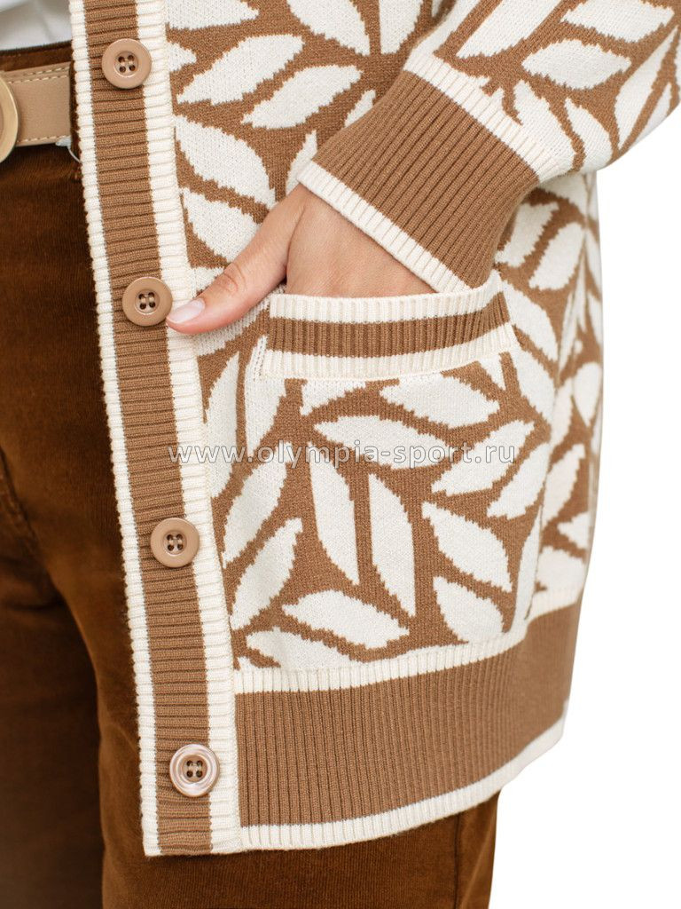 Кардиган жаккардовой вязки выполнен из нежной пряжи на основе вискозы с добавлением кашемира. Мягкая модель не раздражает кожу, приятно ощущается на теле и поддерживает комфортный микроклимат. Совет стилиста: модель гармонично впишется в любой гардероб, добавив образу выразительности. Сочетайте с однотонными брюками, юбкой, платьем или джинсами