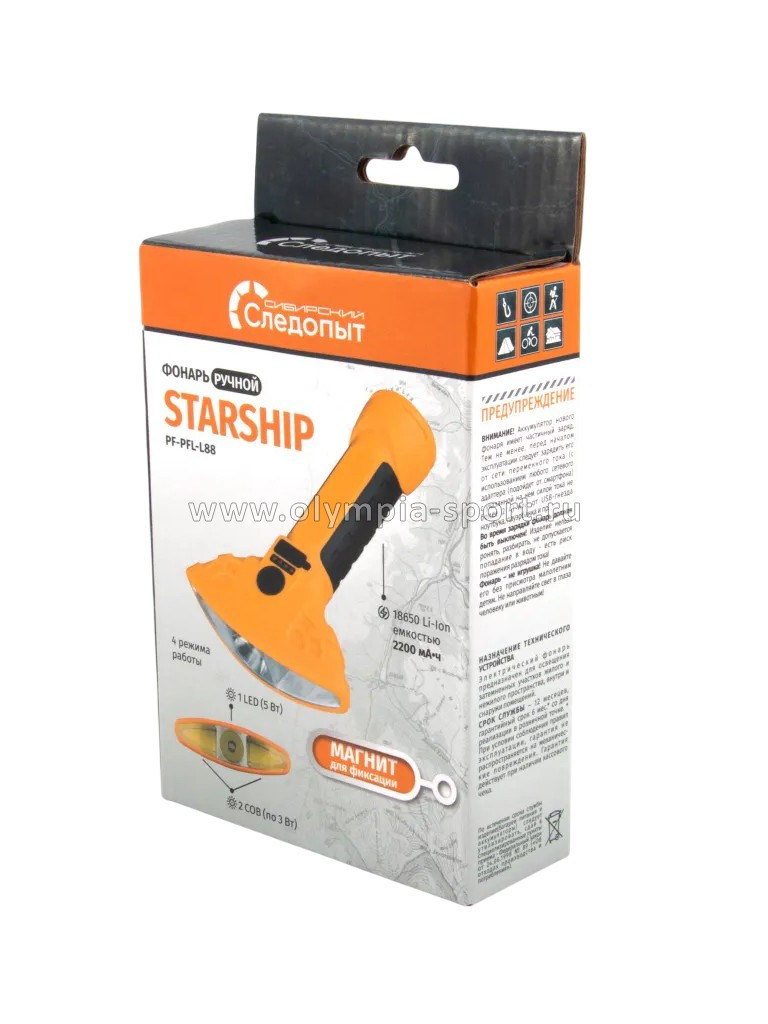 Фонарь ручной Следопыт Starship 1LED + 2COB (акб 2200 mAh) в наличии по цене 770 рублей в интернет-магазине спорттоваров «Олимпия» в Саратове. Мы предлагаем лучшую стоимость на категорию фонари. Приобрести Фонарь ручной Следопыт Starship 1LED + 2COB (акб 2200 mAh) можно оформив заказ в интернет-магазине, или отправив заявку по почте, а также по телефону +7 917 270-46-61 или самостоятельно забрать товар в нашем магазин. Доставка по РФ возможно ТК «СДЭК», «DPD», «ПЭК» или Деловые линии.